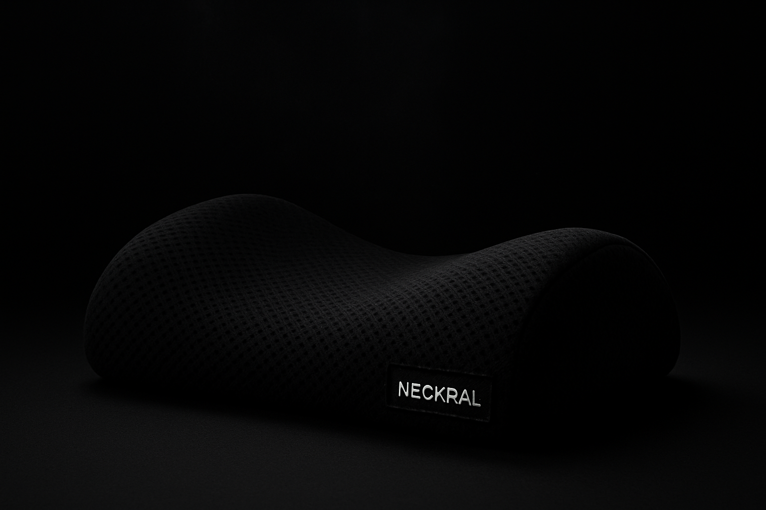 NECKRAL is a micro-cervical support designed to relieve postural tension. Unlike traditional pillows, it fits perfectly into the space behind your neck when you lie on your back, thanks to its contoured shape that follows the natural curve of the cervical spine while supporting your head in a lowered position. This alignment restores the neutral position of the spine, keeping your head and vertebrae properly aligned, which effectively reduces tension built up in the neck and upper back. Ideal for those seeking targeted cervical relief while resting.
